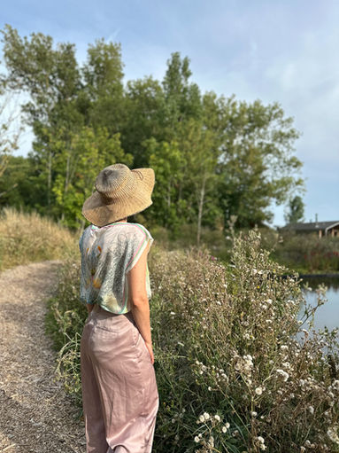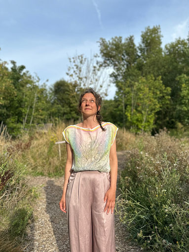 Souvenir Sauvage is a wearable artwork by visual artist Joke Raes, created in 100% silk. Light, breathable and delicate, it feels like a second skin — a sensory experience in which imagination becomes tangible.